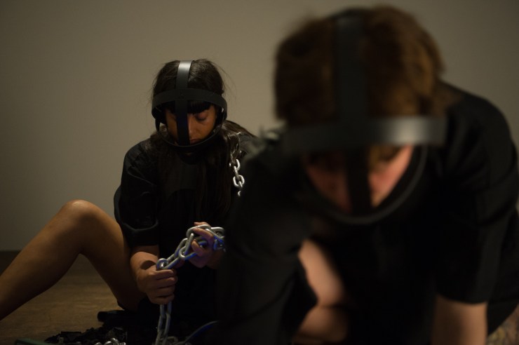Here combining their sonic and installation practices, artists Naomi Blacklock and Anastasia Booth draw on their shared investigations into the feminine body, the archetype of the witch, and the history of these devices – utilising ritual, the body, and other materials to consider the possibilities of agency and rebellion even when the tongue has been silenced.