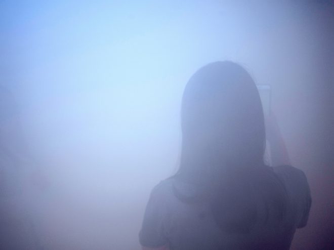 Moving through the work, your body is engulfed, your field of vision is reduced to a dim blur; altering perceptions of space and inviting a different way of experiencing our city. The Size of Air is the fourth of Kinly Grey’s blue smoke room series, presented here in its most ambitious scale yet.